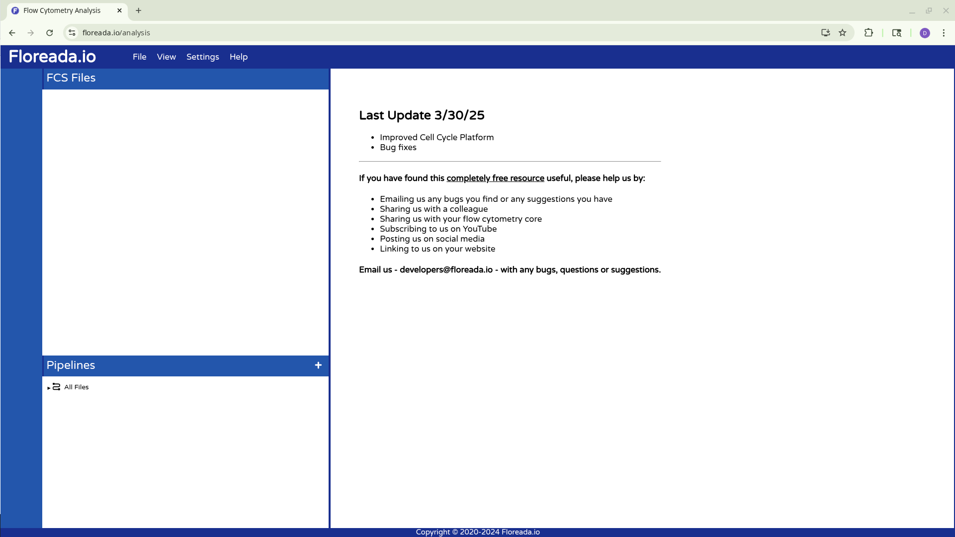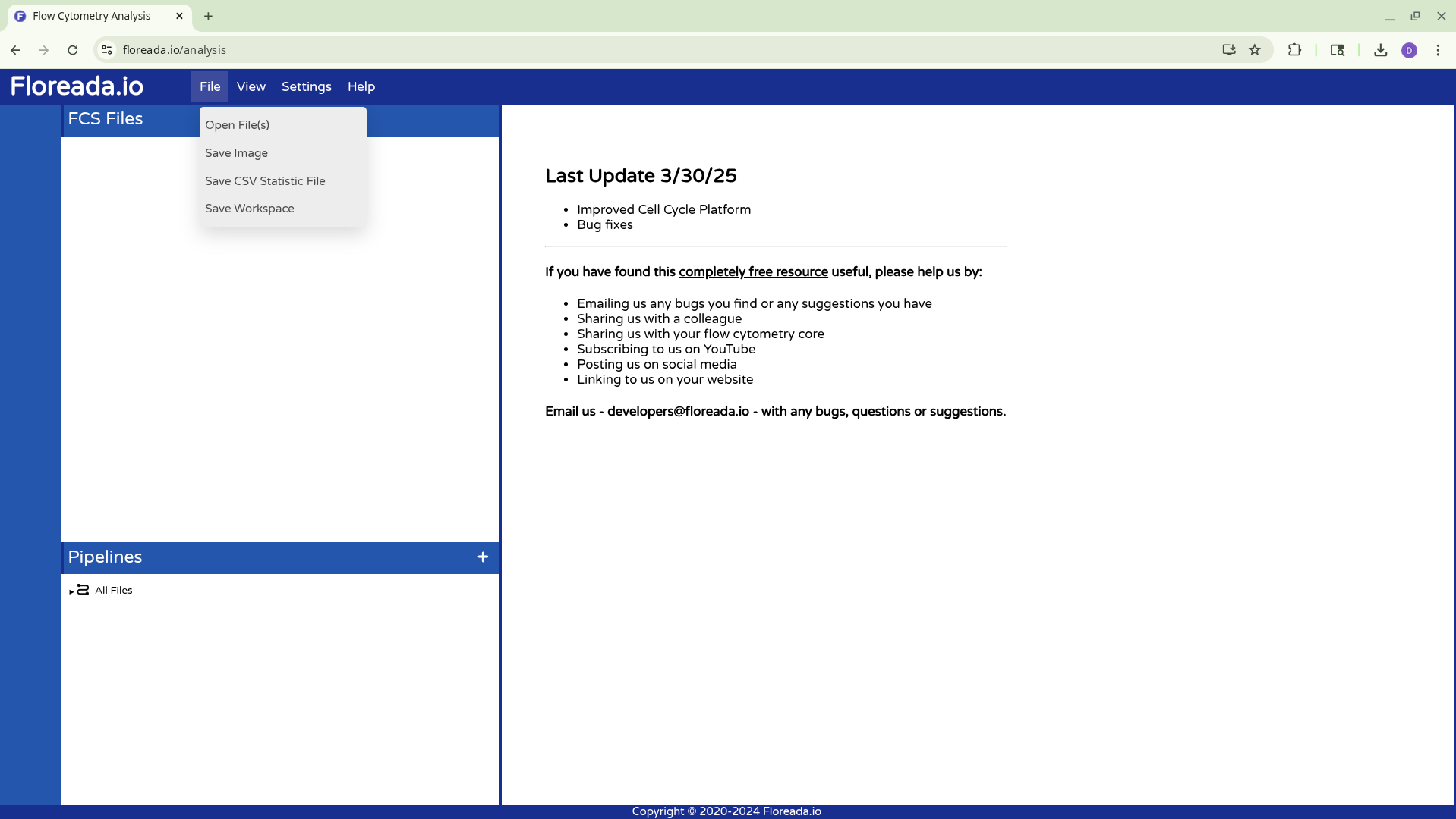 To reopen the Floreada workspace within the browser, reopen the website, and select the Open File(s) option.