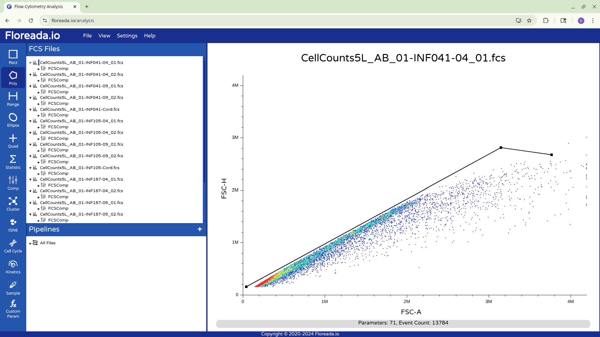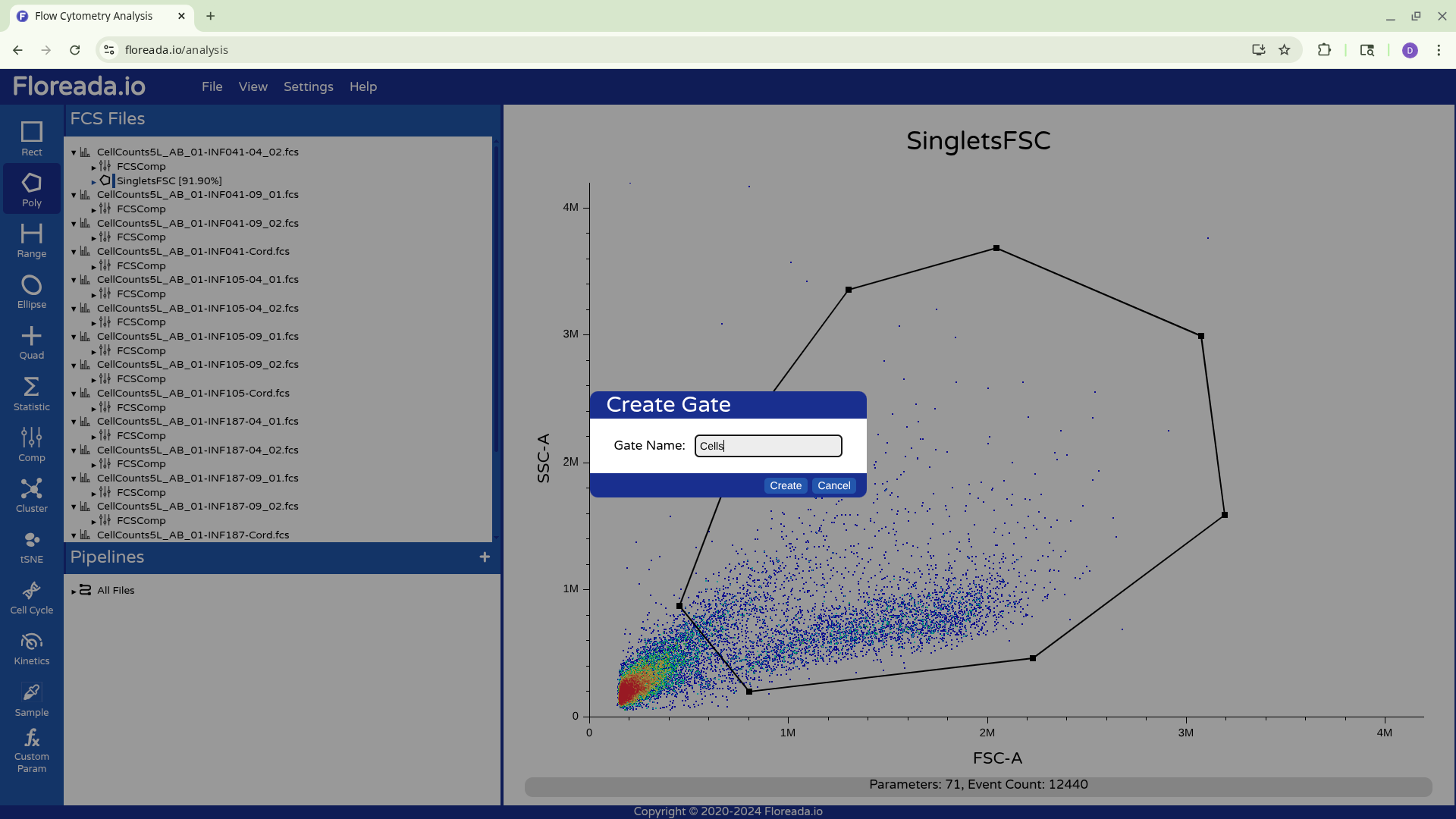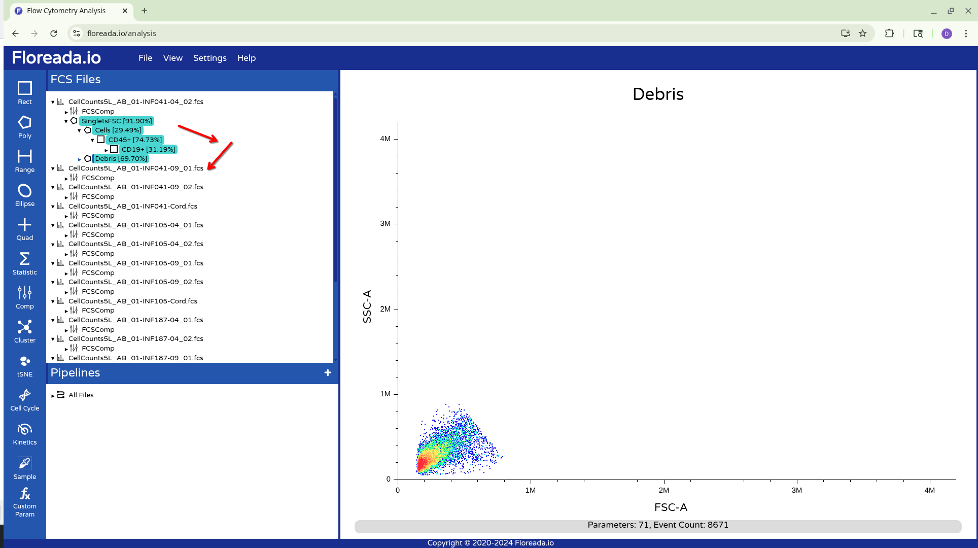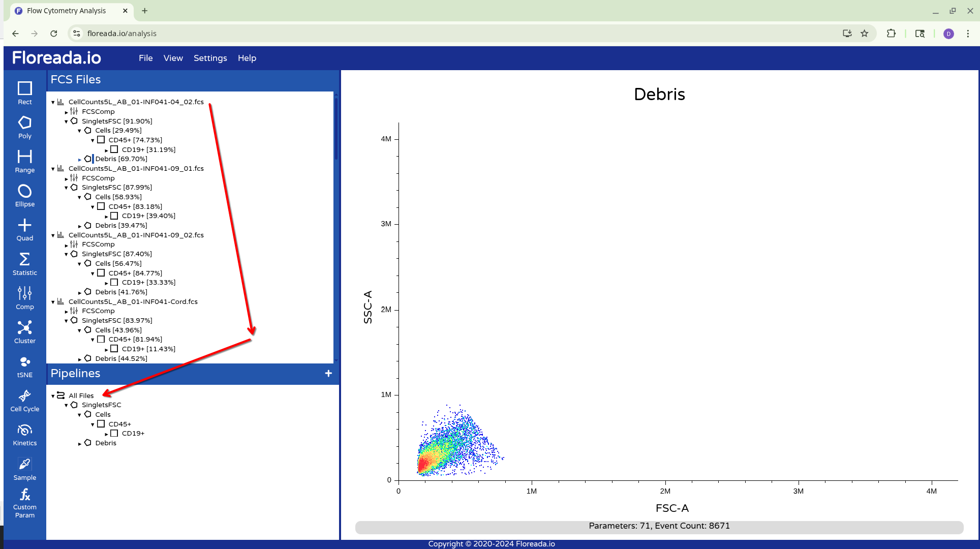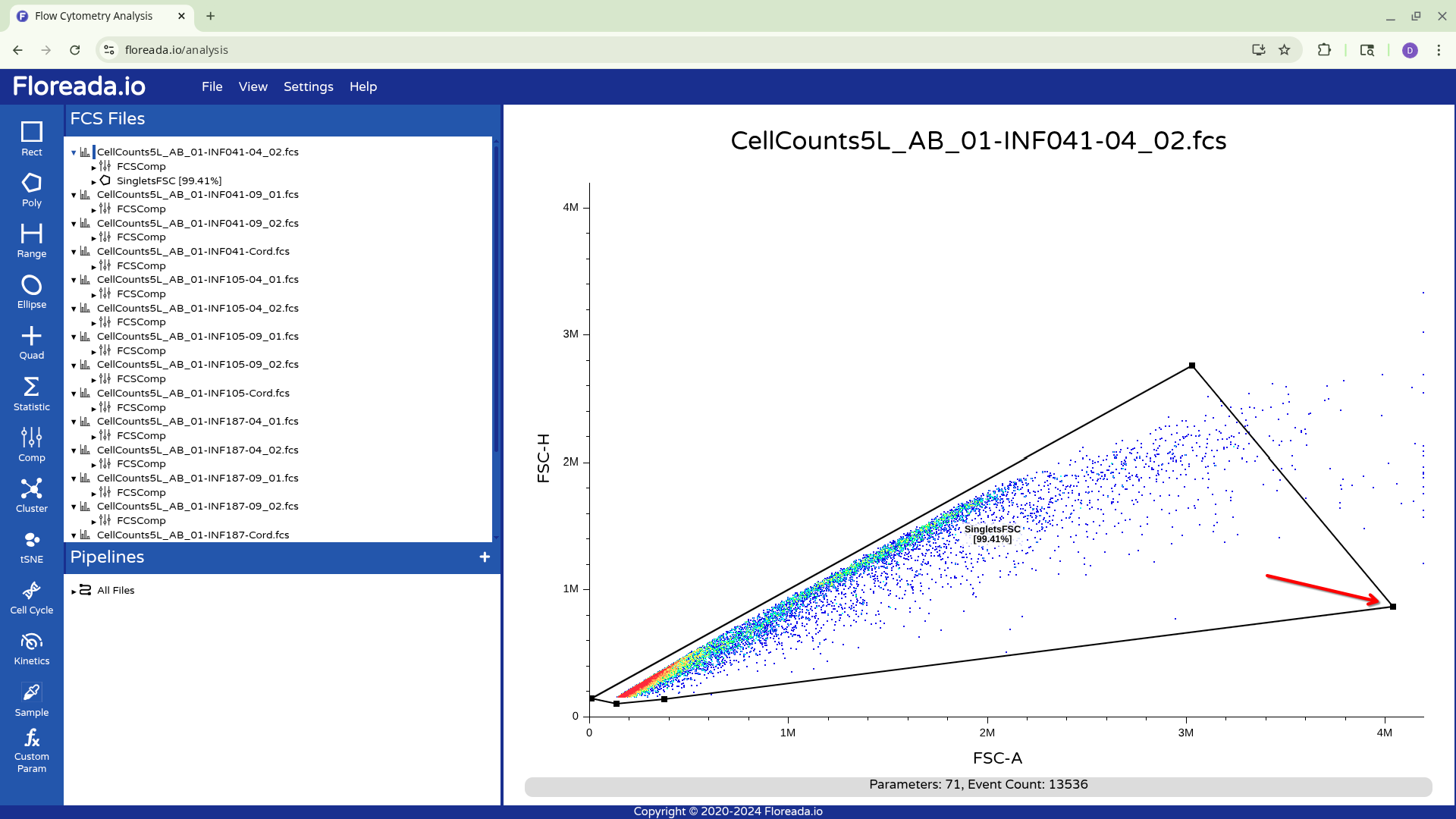 Alternatively, you can drag down the highlighted gated to the Pipelines Tab, and apply to All Files. This will result in the gates being copied to all specimens in the experiment.