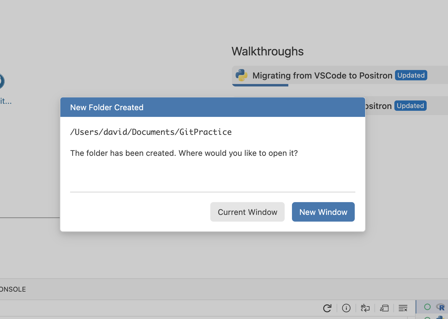 Having successfully connected our local Project Folder to a remote GitHub repository, let’s return to Positron.