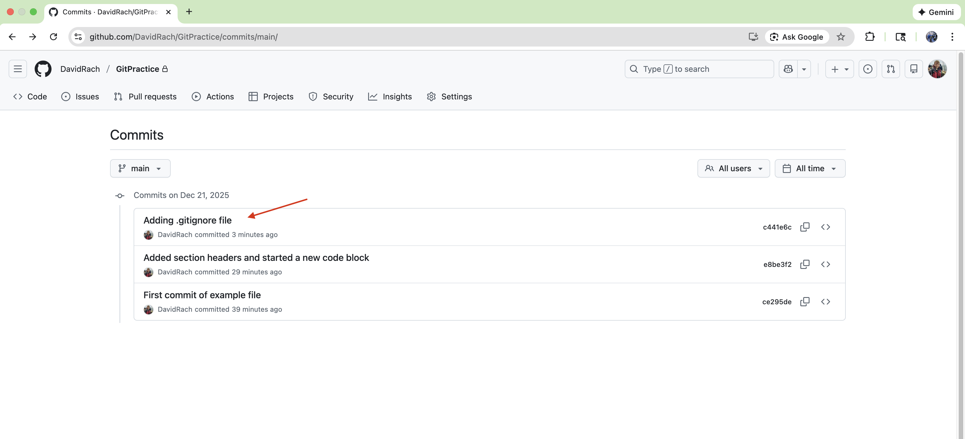 And you should see your second commit now appear in the left primary sidebar underneath the graphs dropdown.