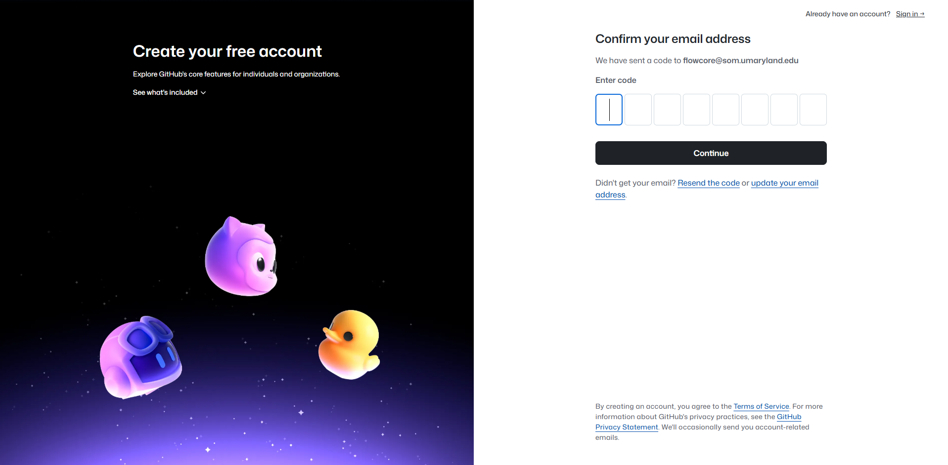 Once you have entered your new account information, you will need your account creation by entering the code sent to the email address that you provided.