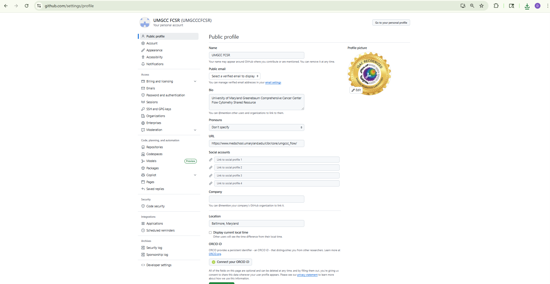 Feel free to edit the default profile picture, and any other fields that you feel are relevant. Once done, continue to scroll down the page past ORCID ID.