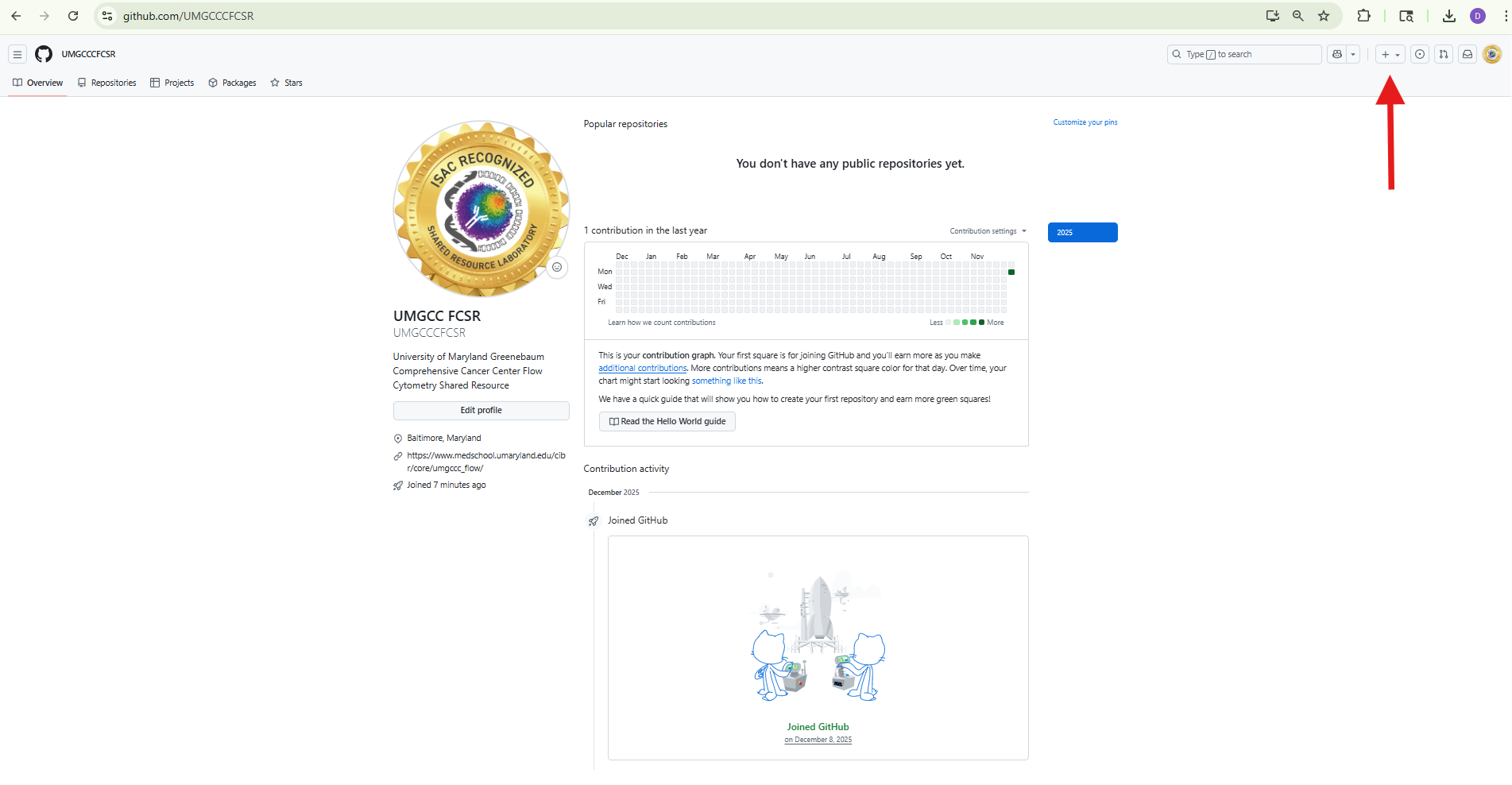 You are now on your public GitHub profile page. For a newly created account, it will look something like this: