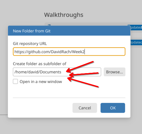 Paste in your new repository’s url. Additionally, if you want to match file.paths shown in the examples, set your storage location to your local Documents folder (please note the start of the file.path will look differently depending on whether you are on Windows, MacOS, or Linux).