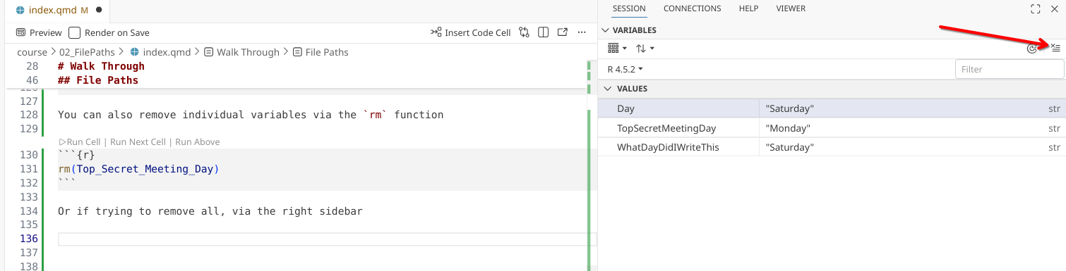 rm(Top_Secret_Meeting_Day)Or if trying to remove all, via the right sidebar