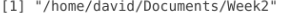 This returns a file path. The final location (Week2 in this case) is the Working Directory. Your computer when working in R will be descern other locations in relation to this directory.