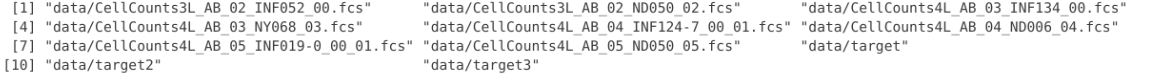 files <- list.files("data", pattern=".fcs", full.names=FALSE, recursive=FALSE)
